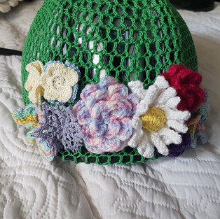 A fellow crochet designer, Ramalakshmi Pasumarthy has designed a beautiful and versatile little flower motif (the pale lavender), specifically for my HOPE Helmet!